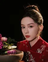 周也轻抚红色纱裙,姿态优雅如古典画卷,眼中闪烁着对新年的无限憧憬